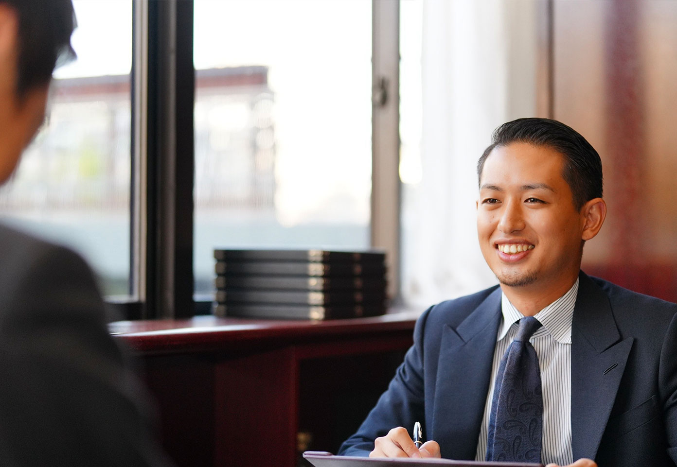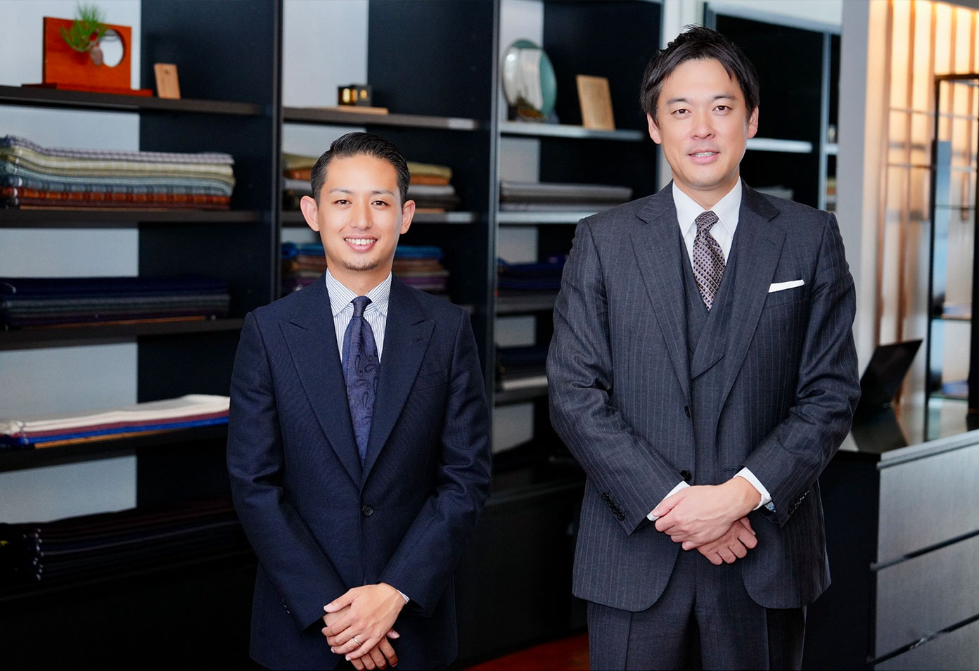 熟練のスタッフがご不明点や松崎の服作りについて、オーダースーツづくりが初めての方で分かりやすくご説明いたします。まずは話を聞いてみたい場合でもお気兼ねなくご来店ください。