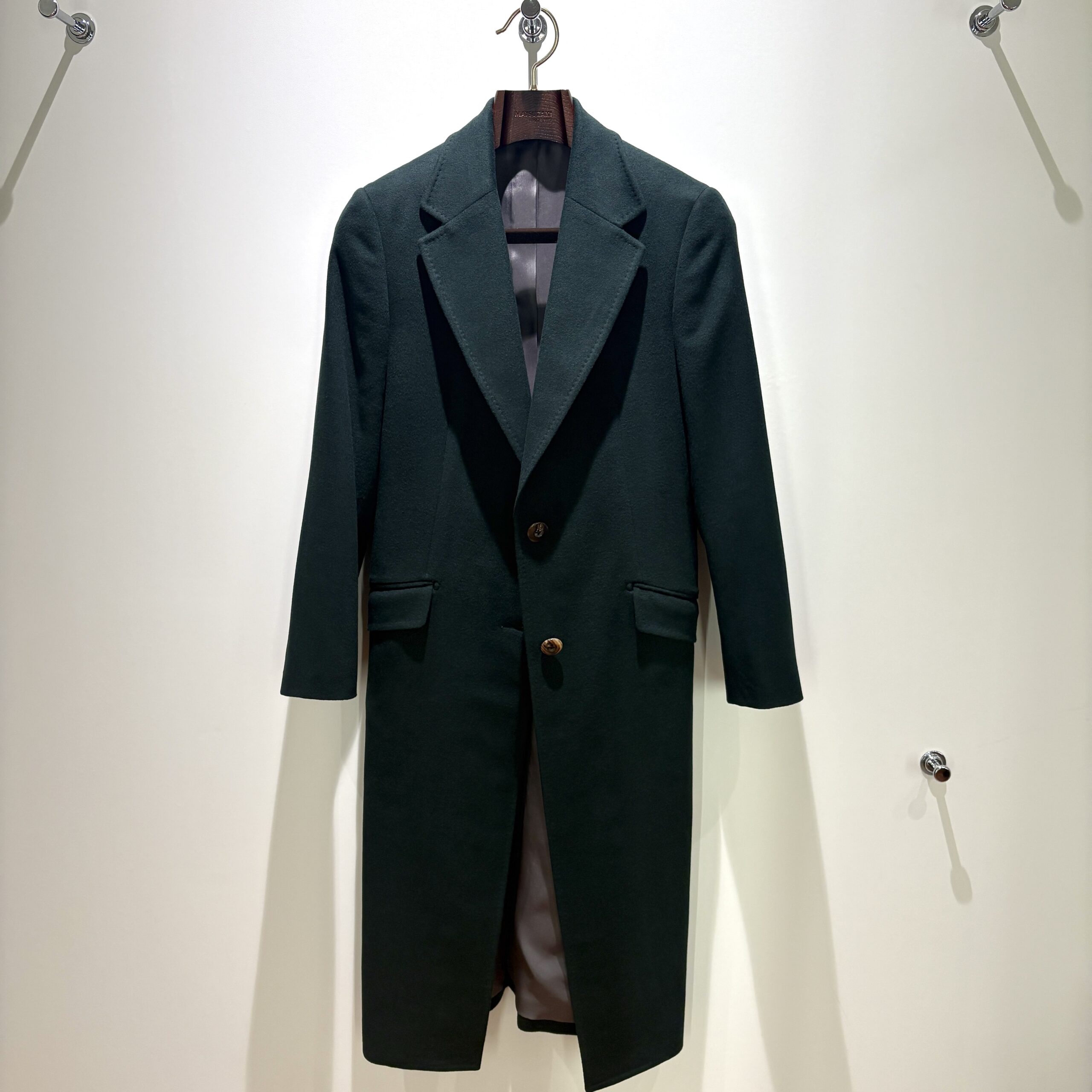 釦はマットな水牛で装いに深みを