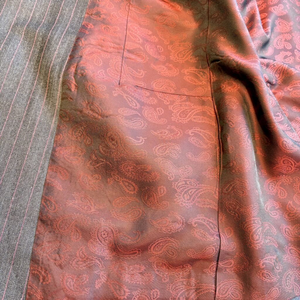 裏地には、深みのあるボルドーのペイズリーを。